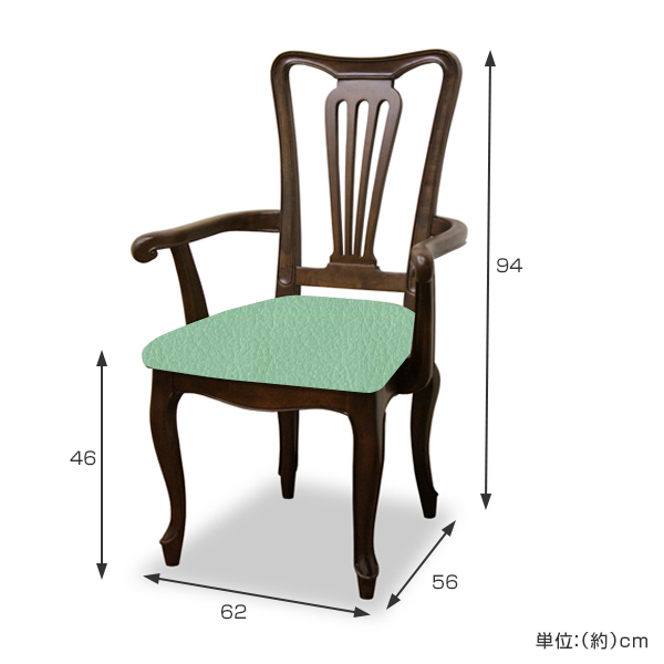 - 本体:マホガ二ー、ポリウレタン塗装、張地:合成皮革(ビニールレザー)