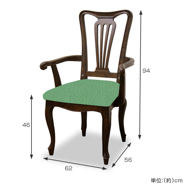 - 本体:マホガ二ー、ポリウレタン塗装、張地:合成皮革(ビニールレザー)