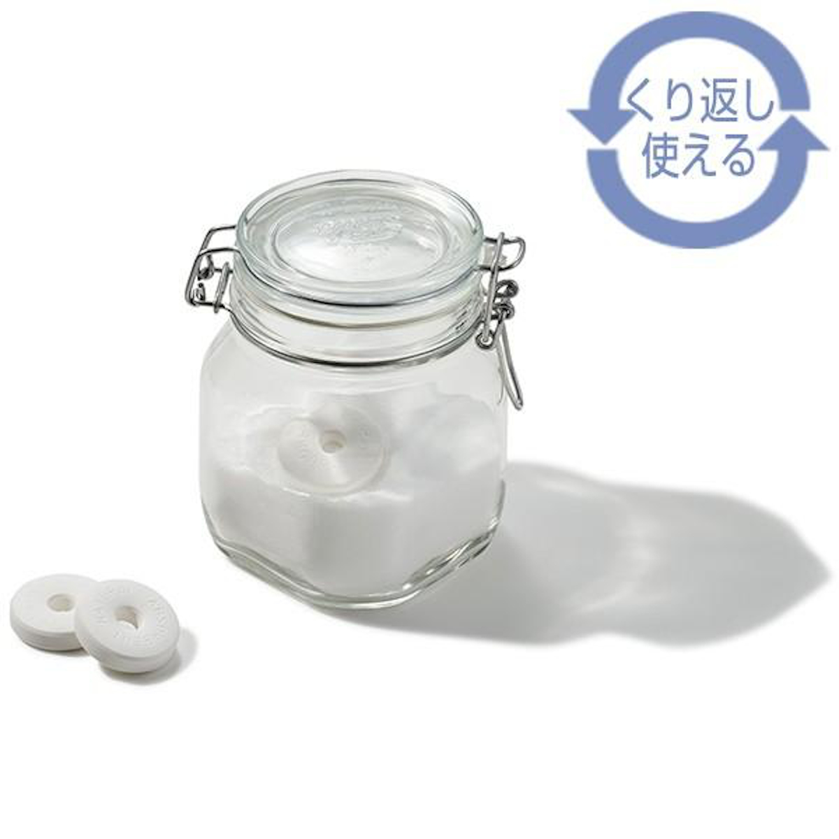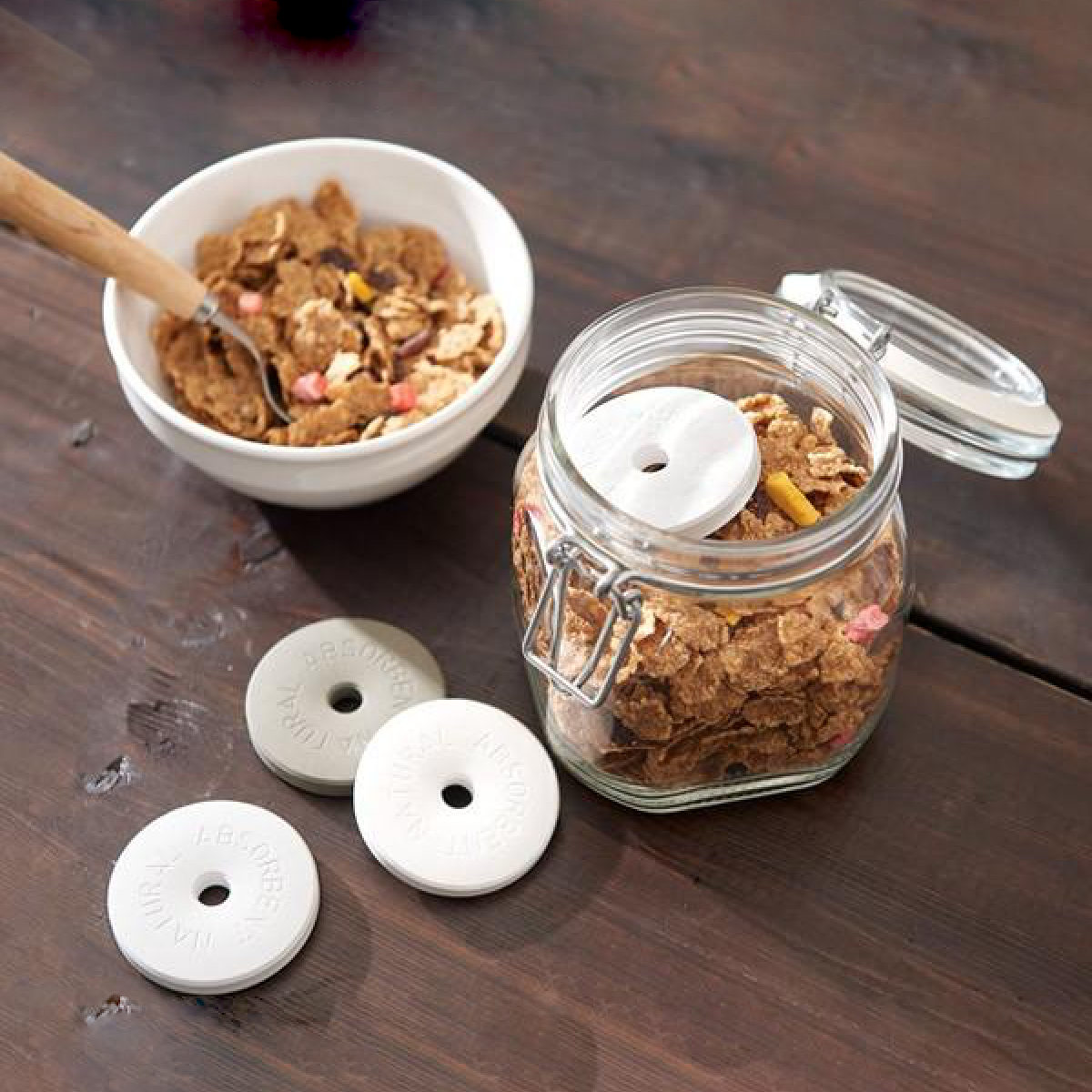 塩や顆粒コンソメなど、使っているうちに湿気で固まってしまいがちな調味料と一緒に入れておくだけです。吸湿性の高い「珪藻土」が湿気を吸い込み、サラサラの状態をキープします。