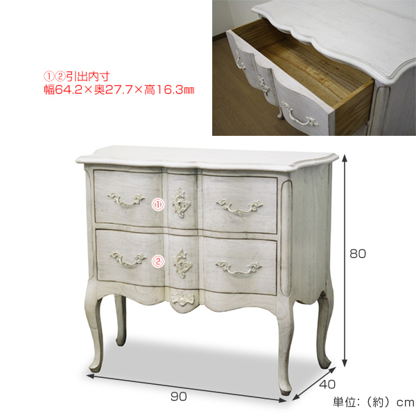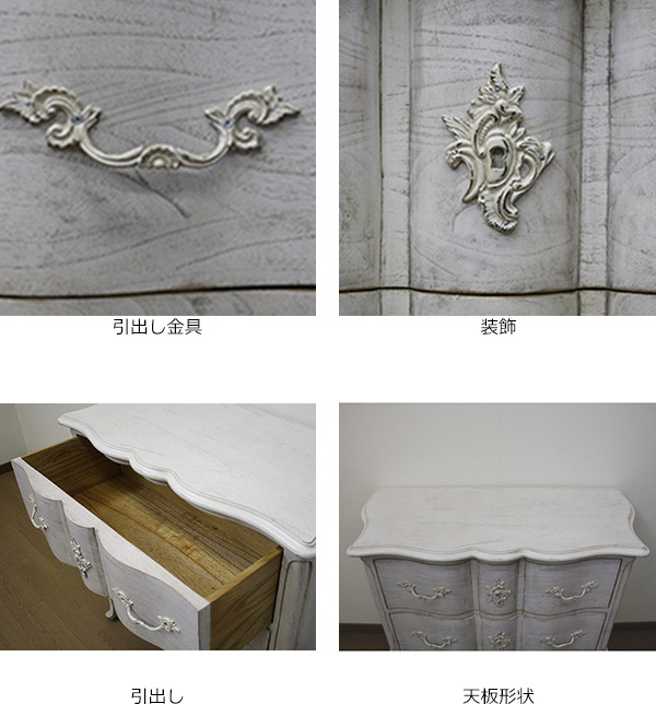 | 備考 | 完成品 ラッカー塗装・ホワイト(シャビーシック) 背面処理:着色仕上げ ※写真と商品は色合いが多少異なる場合がございます。予めご了承下さい。 |