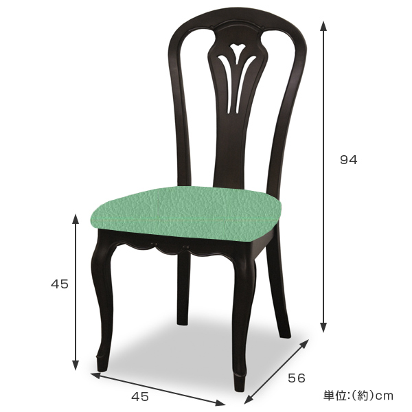 - 本体:マホガ二ー、ポリウレタン塗装、シート張り地:合成皮革(ビニールレザー)