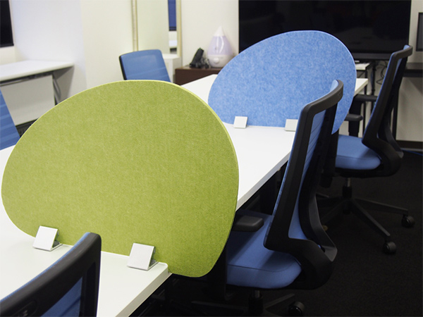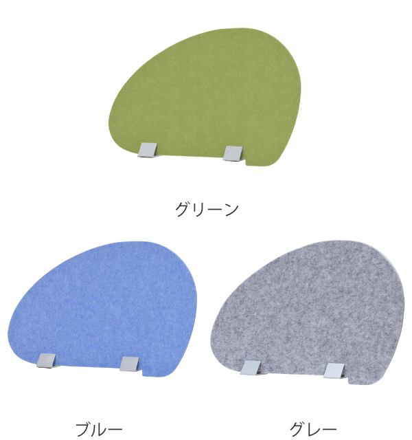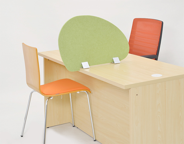 天板に置いて隣からの視線を遮る置き型パネルです。フェルト素材と卵型の曲線が和やかな空間をつくります。