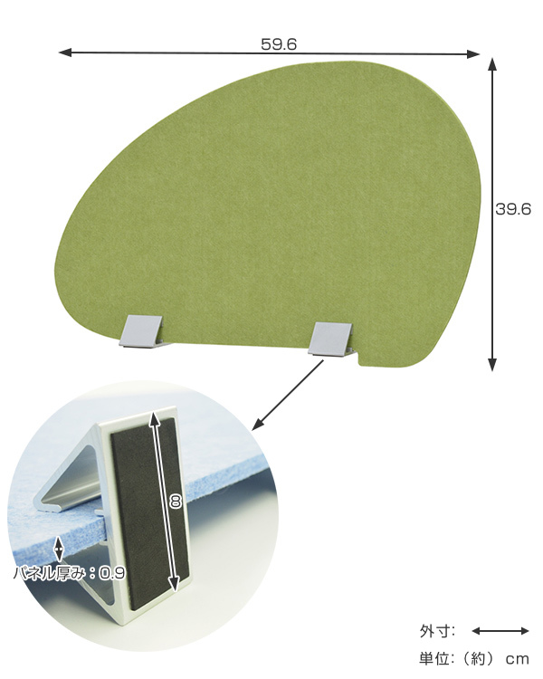 | 材質 | パネル:フェルト(ポリエステル) 脚部:アルミ 机上設置面クッション材:EVA |