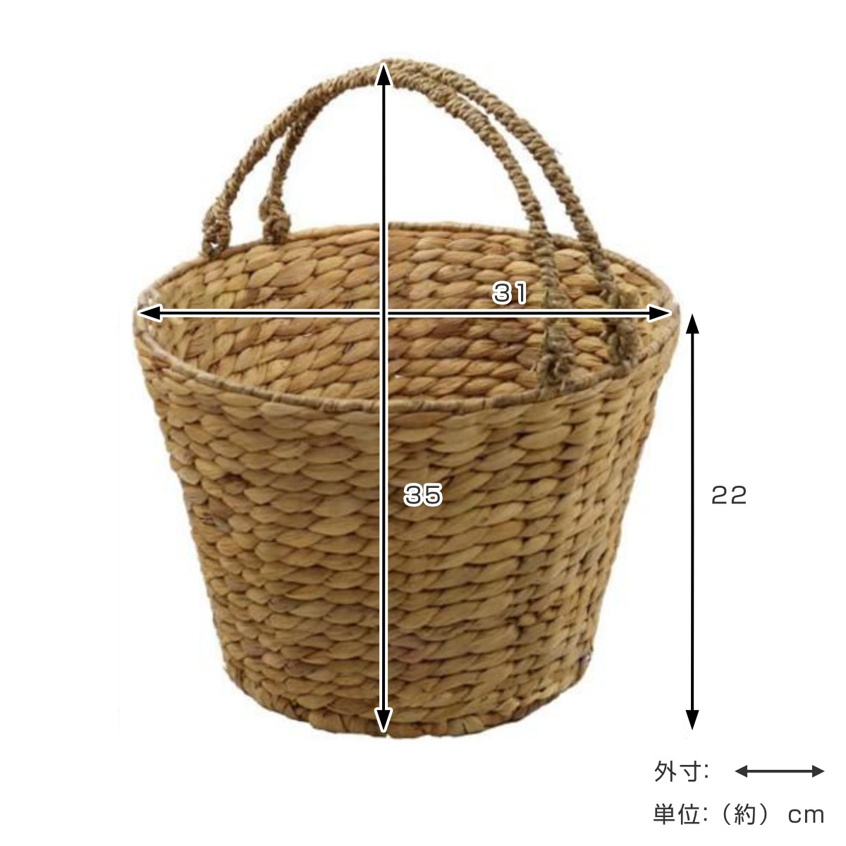 | サイズ | 約 高さ22(cm) 直径:約 31(cm) 持ち手を含む高さ:約 35(cm) |