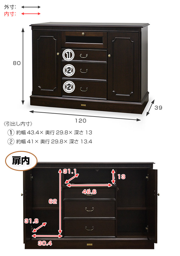 - 約幅120×奥行39×高さ80cm