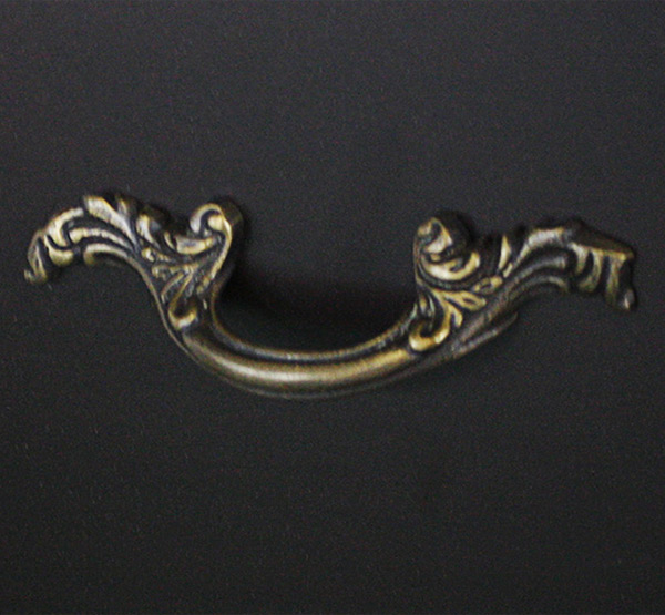 引き出しの手掛けはクラシカルなデザインを採用しています。ワンポイントで主張しすぎない存在感が魅力です。