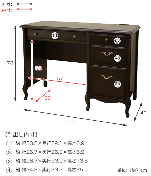 ●贅沢なマホガニー材を使用したヨーロピアンクラシック調のワイドデスクです。