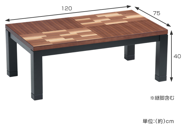 表情豊かな変化貼りの家具調こたつ