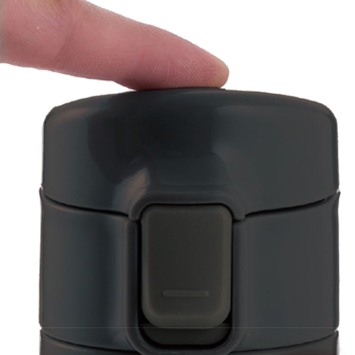 ボタンを押しながら下げるだけなので片手でワンタッチで開けられます。飲み口は飲みやすさにこだわった形状でやさしい口当たりです。