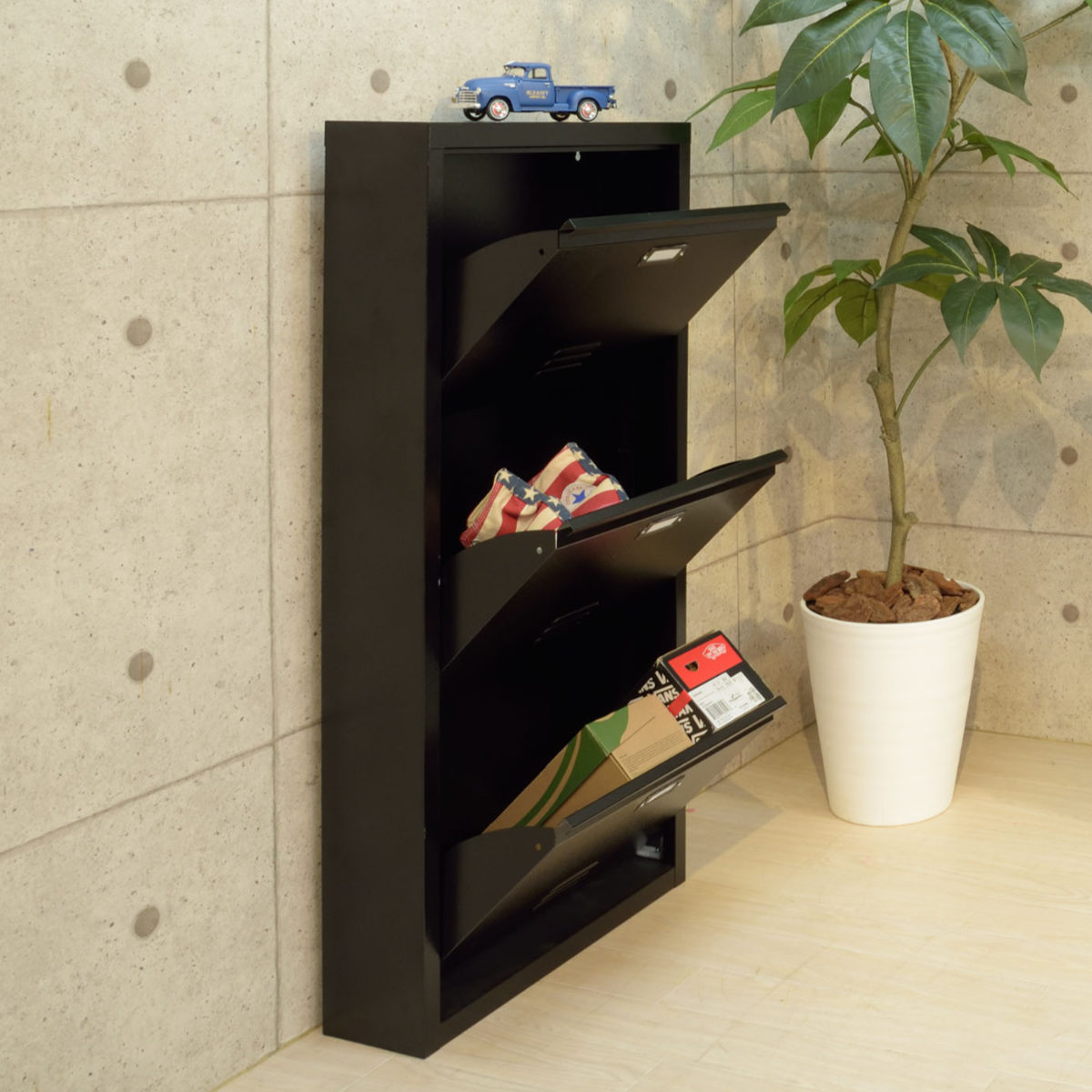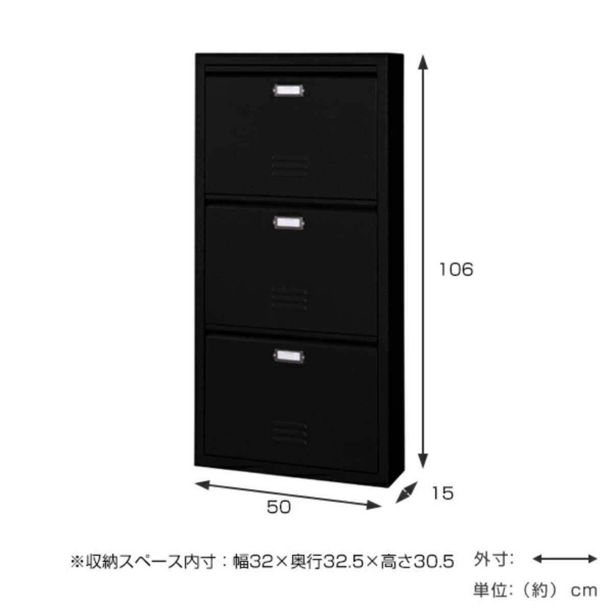 ミリタリーの無骨さを取り入れたシューズラックです。ロッカー風のデザインはお部屋に置けばクールな印象へと早変わりします。奥行15cmのコンパクトなサイズ感なので手軽にインテリアを楽しめます。