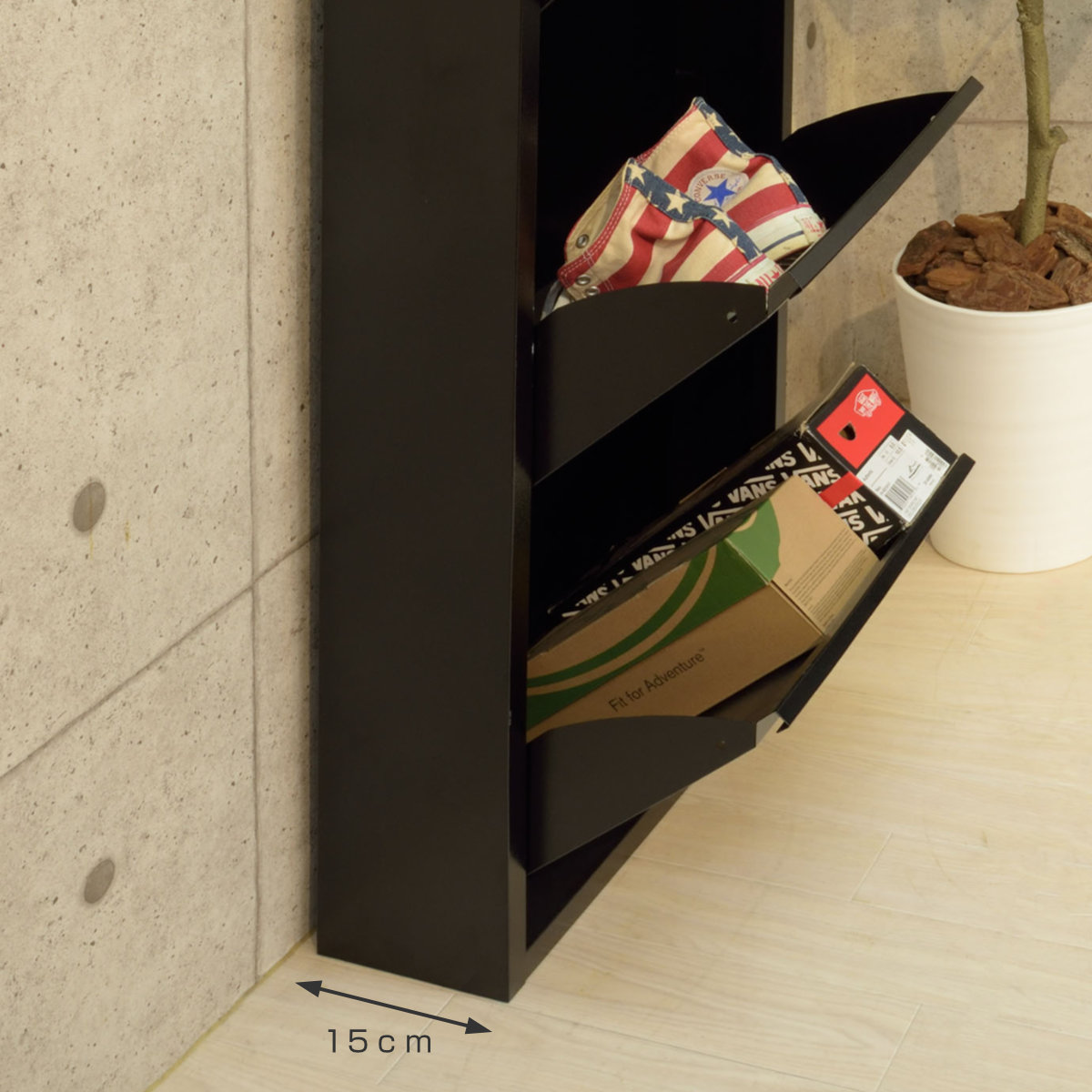 奥行はわずか15cmのスリムなサイズなので「靴を収納したいけど、玄関は狭くしたくない」という方におすすめです。