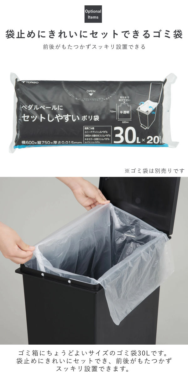 ![]() セットしやすいポリ袋30L 20枚入り | ![]() セットしやすいポリ袋20L 30枚入り×10個セット |