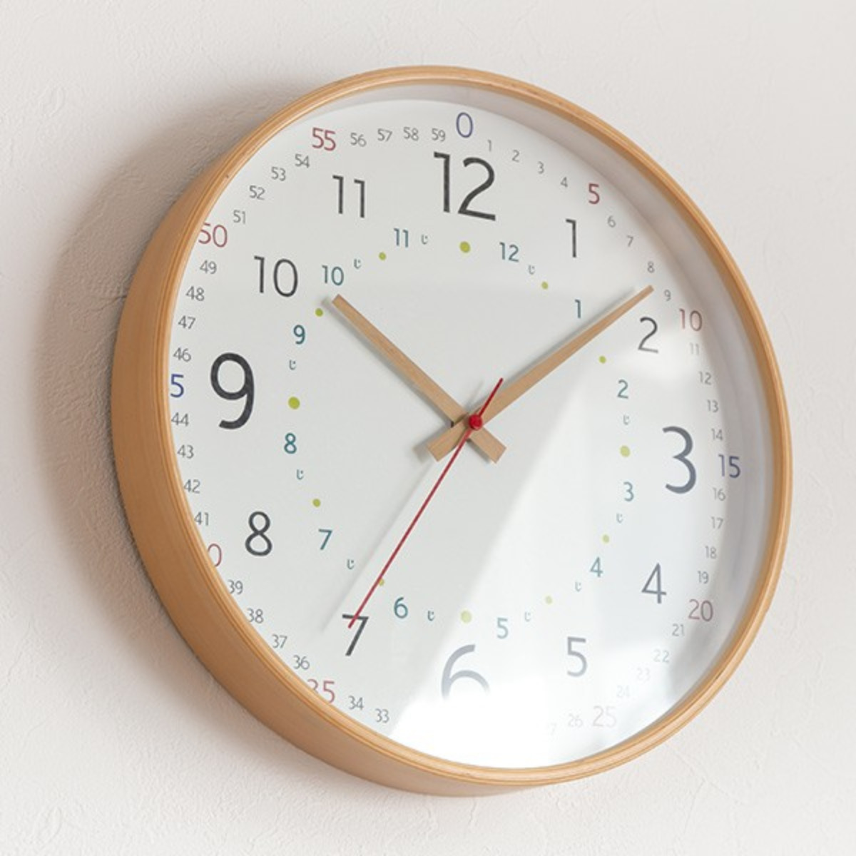 小さなお子様でも針の指す数字を読むだけで「いま、なんじ?」が分かる、家庭での学びに最適な知育時計です。おうちの方が時計の読み方をお子さまにわかりやすく、教えられるように工夫がされています。