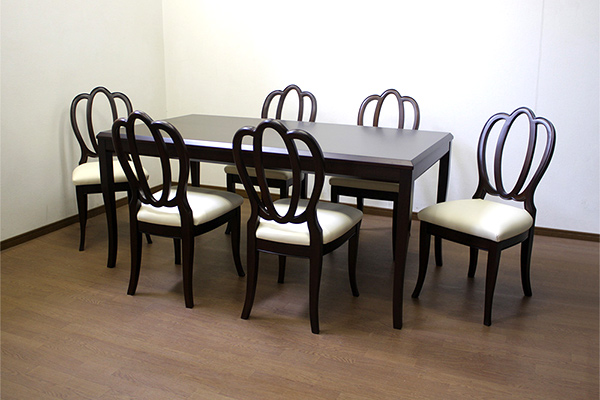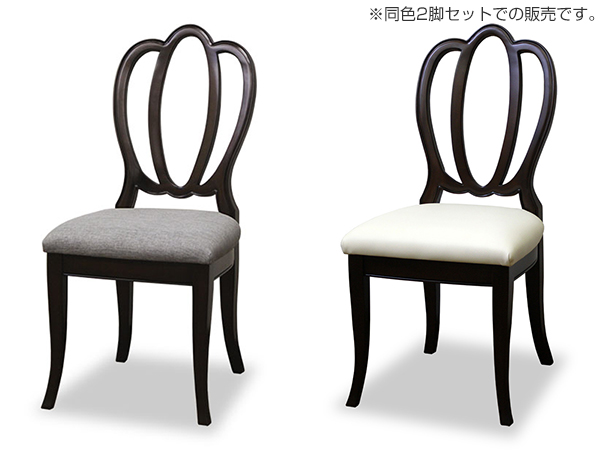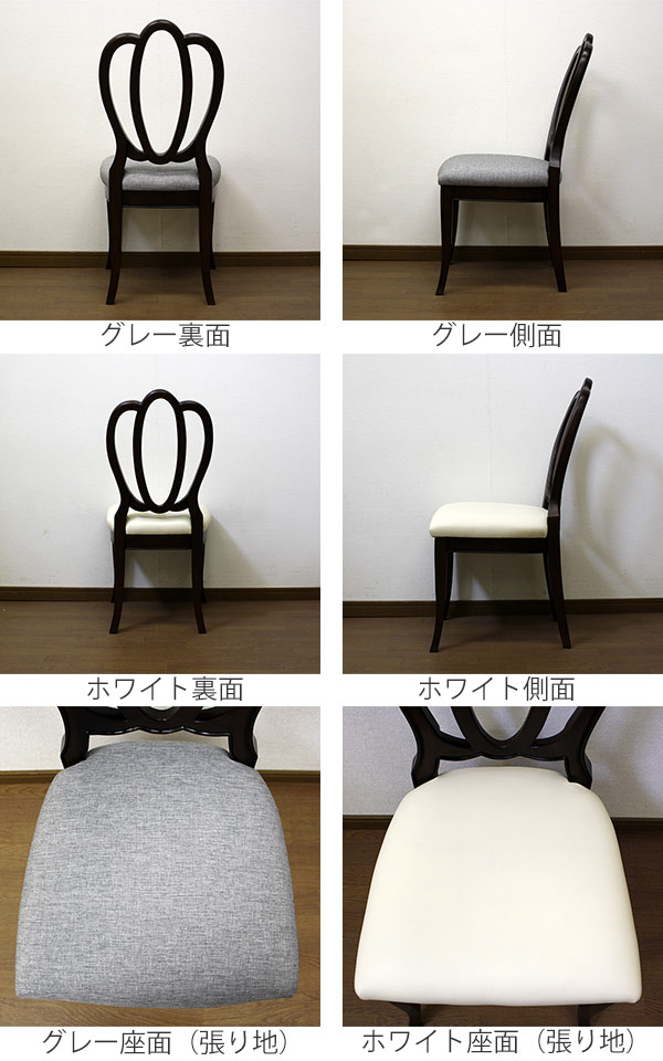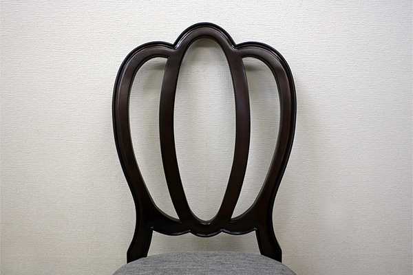 こちらのタイプのチェアは、クラシカルな背もたれが印象に残るエレガントなデザインです。1脚ずつ丹精込めて手作りされています。