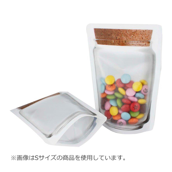ガラスキャニスター風のお洒落な保存袋です。厚手のフィルム・底マチ付きでしっかり自立します。安心な日本製なので食品を入れたり、小物の整理としても使用できます。厚手のフィルムで繰り返し使うことができるので調味料入れとして使用したり、お菓子を入れてプチギフトのラッピングとしてもお使いいただけます!