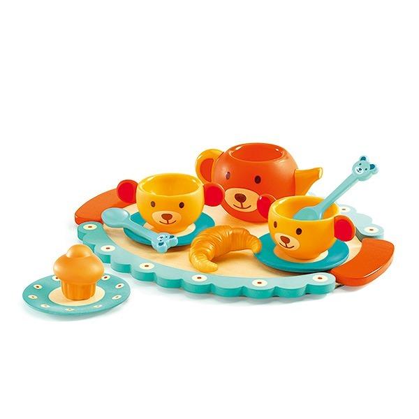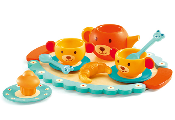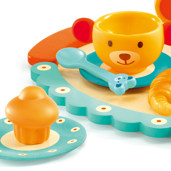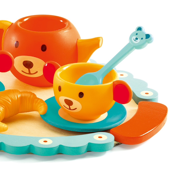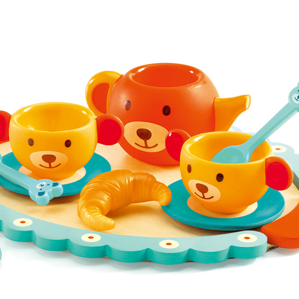 可愛いクマのティーセットは明るいカラーでお友達や家族と楽しくおままごとができます。