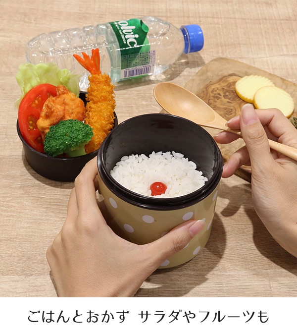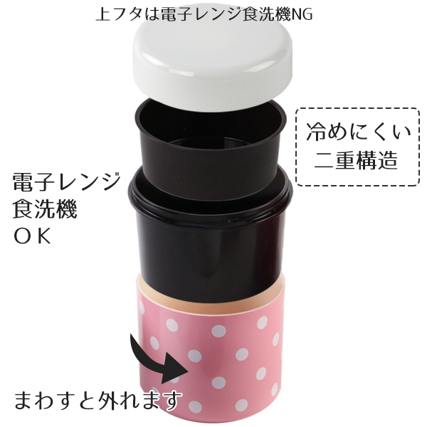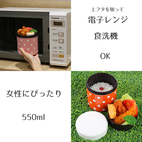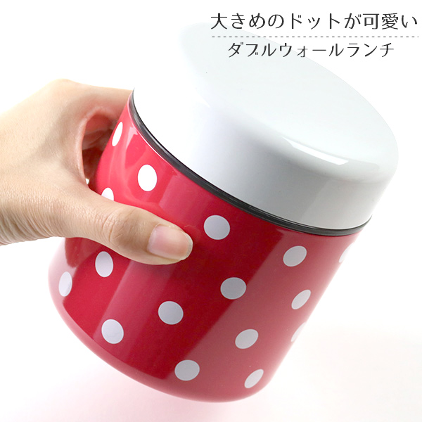 大き目のドット柄が可愛い二重構造で冷めにくいお弁当箱