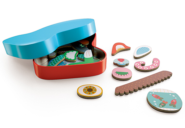 82ピースのマグネットを自由にレイアウトして可愛いモンスターを作ることができる福笑いのようなパズルです。全てのピースをケースにしまうことができるので、お出かけに持っていくのも楽ちんです。