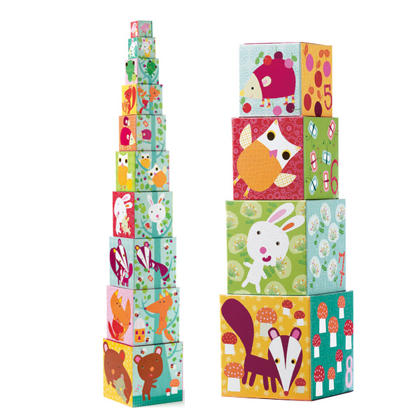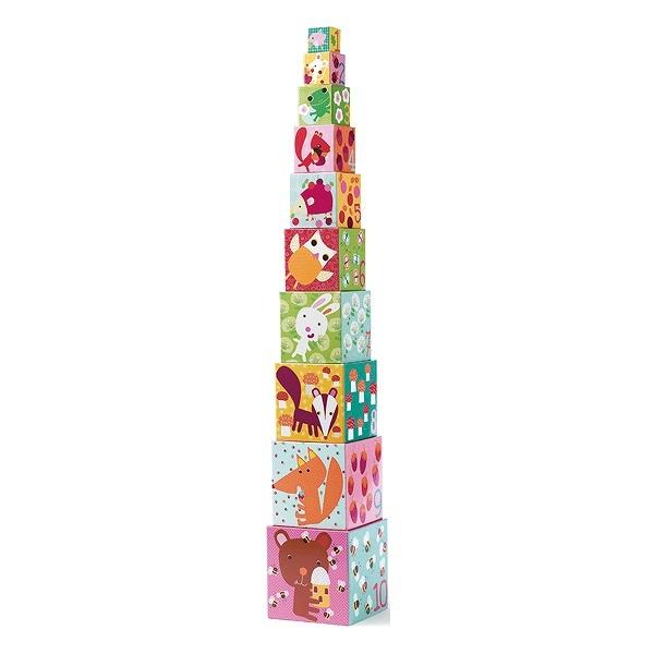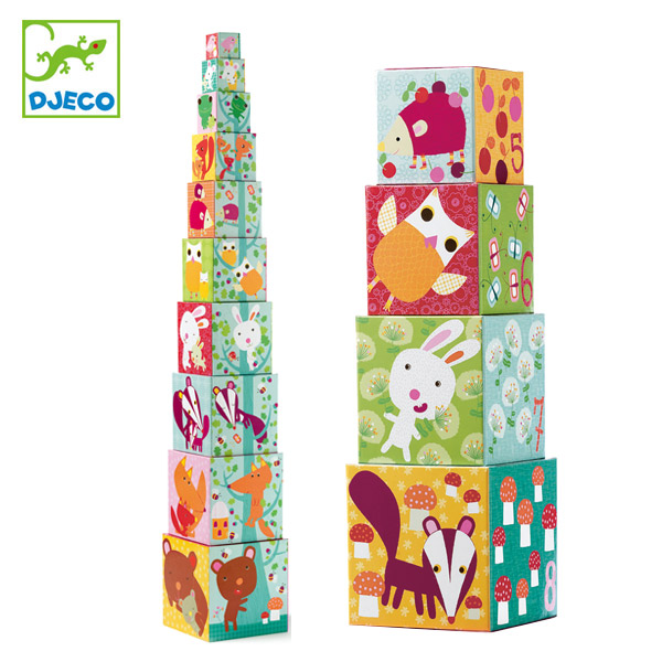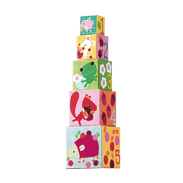 積んだり並べたり、中に入れたり、遊び方は自由。10個のキューブが入れ子になっているので大きさの違いを学びながらお片付けも楽しく、コンパクトに収納できます。
