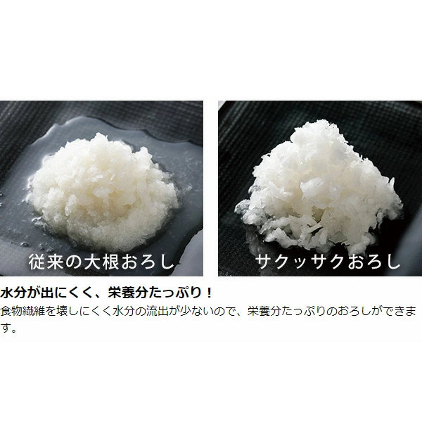 ●従来の鬼おろしで削るよりも、食物繊維を壊しにくく、シャキシャキ食感を味わえます。
