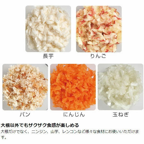 ●大根だけでなく、長芋、にんじん、りんごなど様々な食材もザクザク食感を楽しめます。
