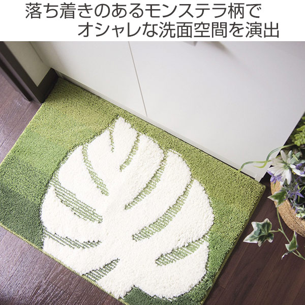 落ち着きのあるモンステラ柄の洗面マット