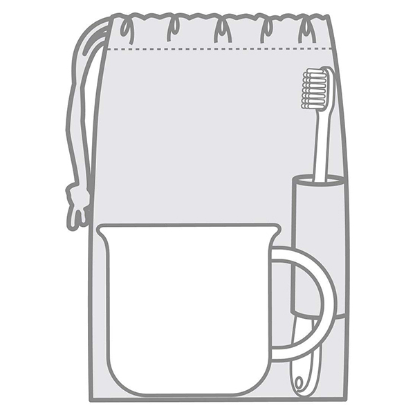 コップ袋の内側には、歯ブラシホルダーが付いているので、袋の中で歯ブラシをしっかり立てて入れることができます。
