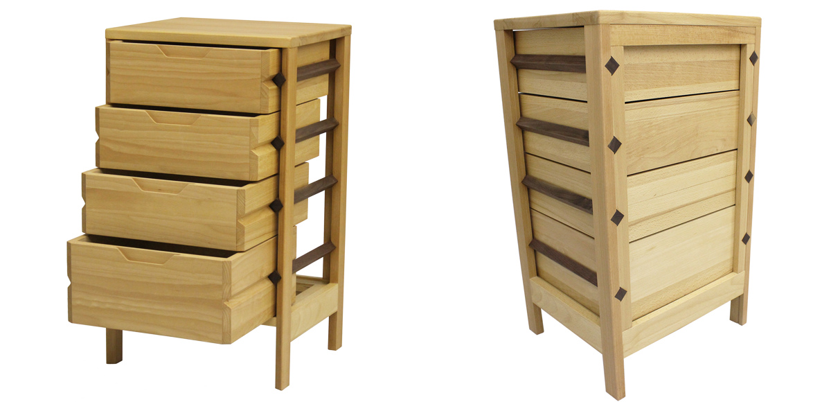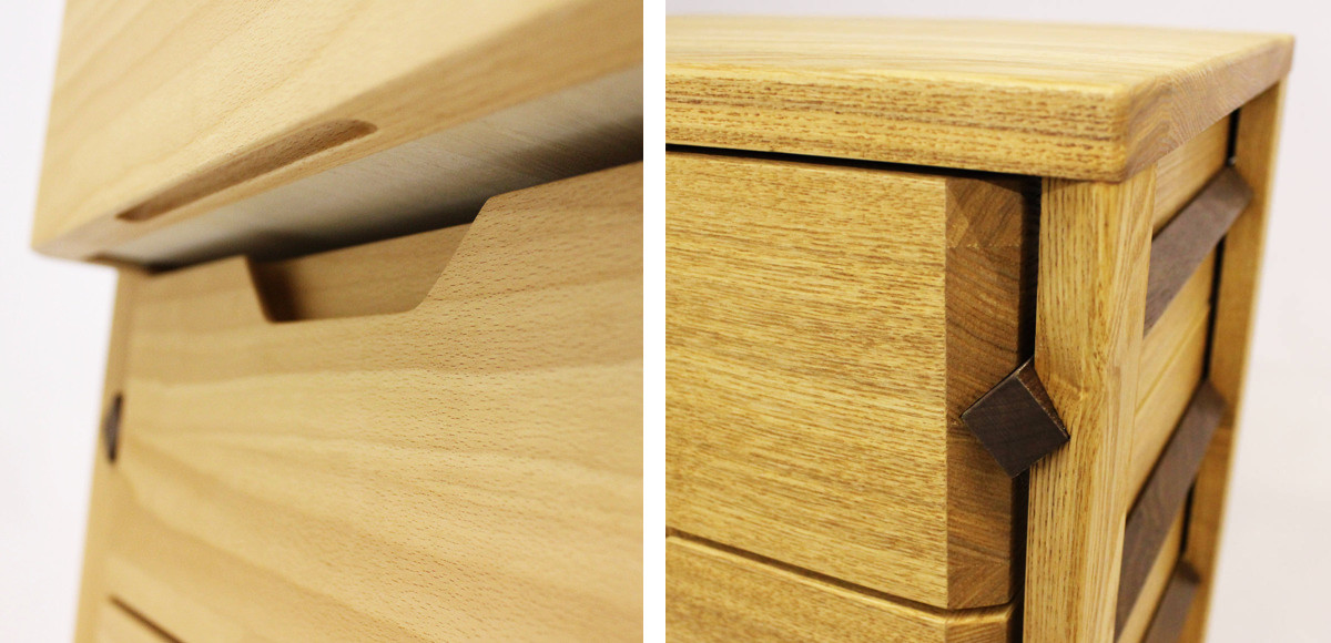 永くご愛用いただくために、化学物質を極限まで減らした接着剤(JIS規格にてF☆☆☆☆認定)や、体にやさしい天然植物性オイルの塗料を使用し、「健康を害さない家具」をテーマにこだわり抜いて作られた製品です。強度が高く、はっきりとした木目の美しさが特徴であるタモ無垢材のチェストは、本物志向のあなたにお勧めです。