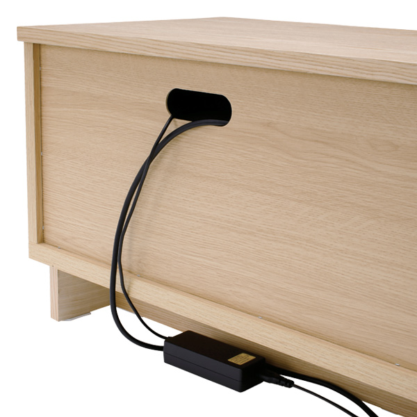 背面下にはコード収納スペースがあるので、コンセント類や配線もスッキリ収まります。