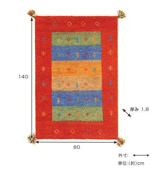 - タッセルを含まない寸法:約80×140cm、厚さ 約1.8cm