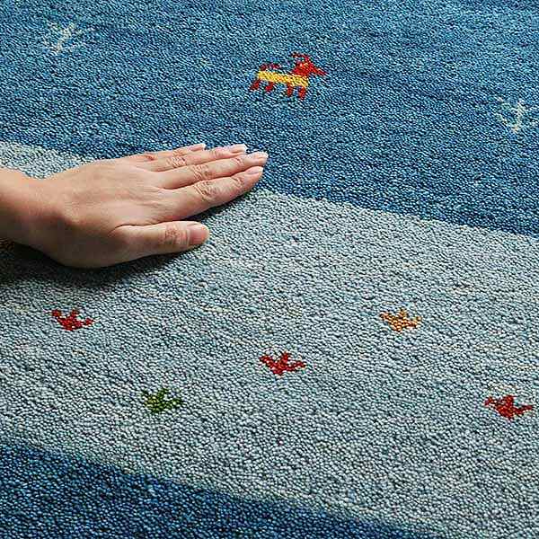 ギャッベにはウールが使用されており、「冬暖かく夏涼しい」「湿気を吸収・放湿」「弾力性が高くへたりにくい」「燃えにくい」「染めやすく色落ちしにくい」「汚れにくい」といった特徴があります。使うほどに風合いが増し、編み目が細かいためゴミも入りにくく、普段のお手入れは掃除機をかけるだけで十分です。デザインだけでなく機能性も優れ、一生モノのマットとして永く愛用できます。