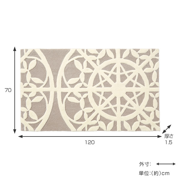 | サイズ | 約 縦70×横120×厚さ1.5(cm) 重量:約2.5kg パイル長:1~1.3cm |