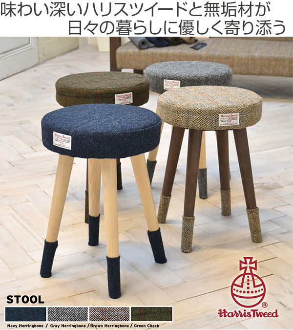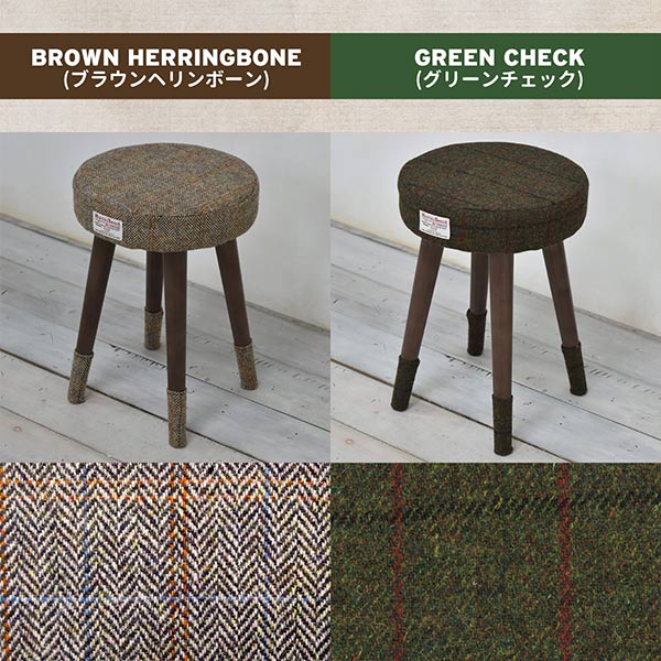 ざっくりとしたウールと色使いが、”味わい深く、美しい”。長く受け継がれる伝統的な生地、ハリスツイードを贅沢に使用したスツールです。素材の美しさに目を奪われる存在感ある仕上がりになっています。