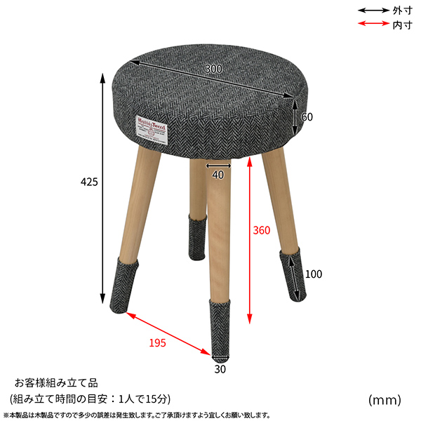 | 材質 | 脚:天然木(バーチ)にラッカー塗装 座面:ウレタン/生地(ウール100%)/積層合板 |