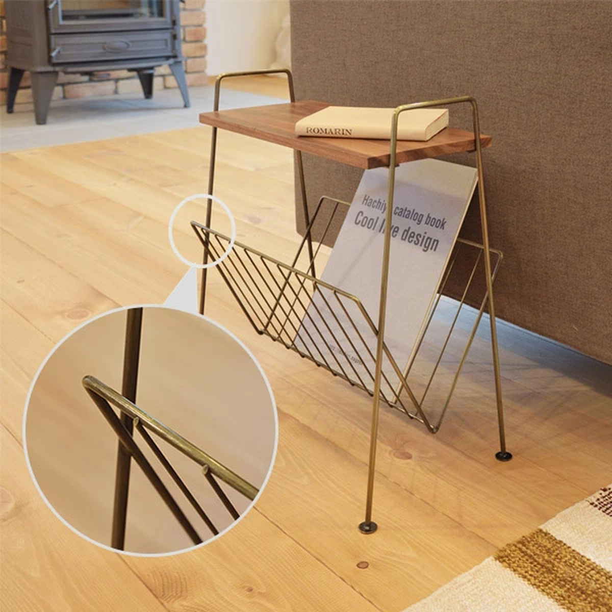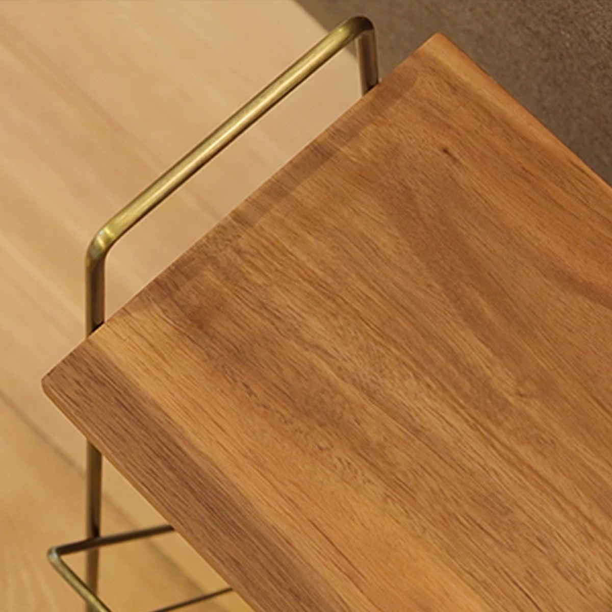 圧迫感を与えないスタイリッシュなスチールの本体と、天然木を使用した天板です。コンパクトなサイズ感で、使用する場所を選ばないサイドテーブルです。