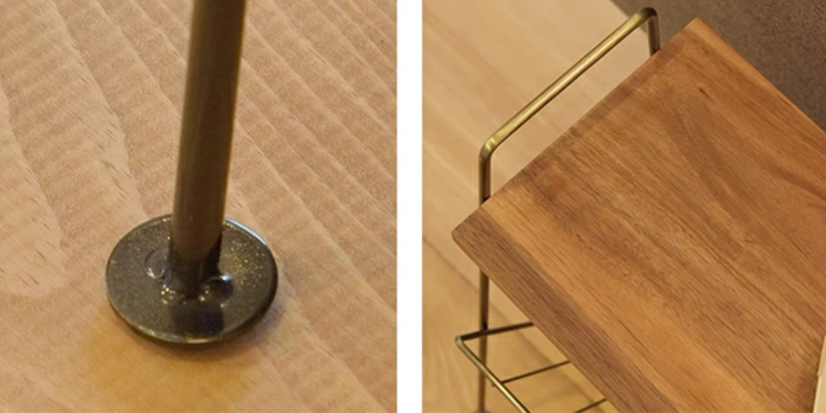 スチールと天然木のサイドテーブル