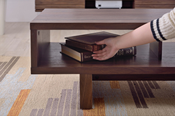 ボックス型テーブルでスタイリッシュな直線的なデザインです。落ち着いた深いブラウンで、どんなインテリアスタイルにも取り入れやすい、飽きのこないシンプルなモダンデザインです。