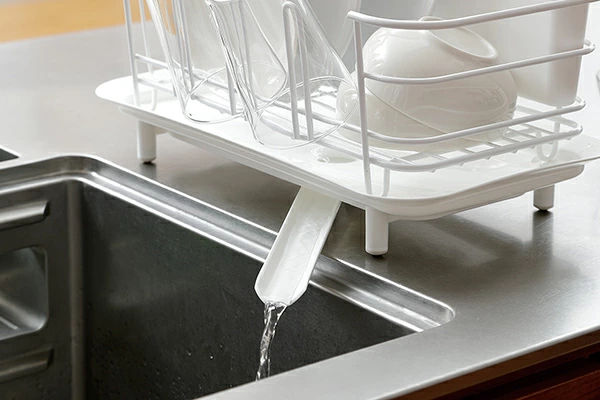 脚が高く通気性が良いので、衛生的に使えるトレーには防汚加工が施されています。脚には、滑り止めも付いているのでシンク周りが濡れていても安心です。