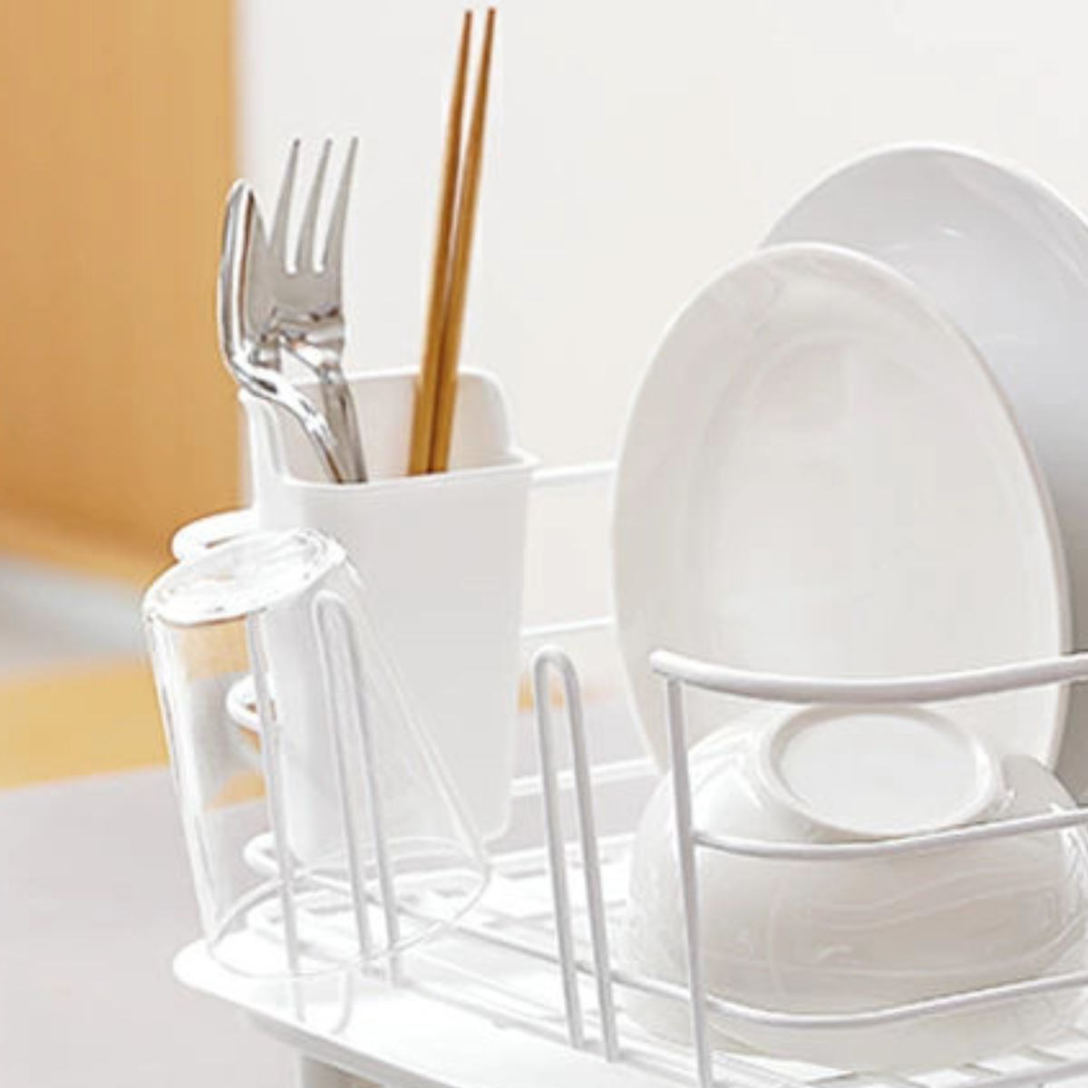 コップやグラス、マイボトルなど水切りできるコップホルダー付きです。2本のバーでコップを同時に2個掛けられます。