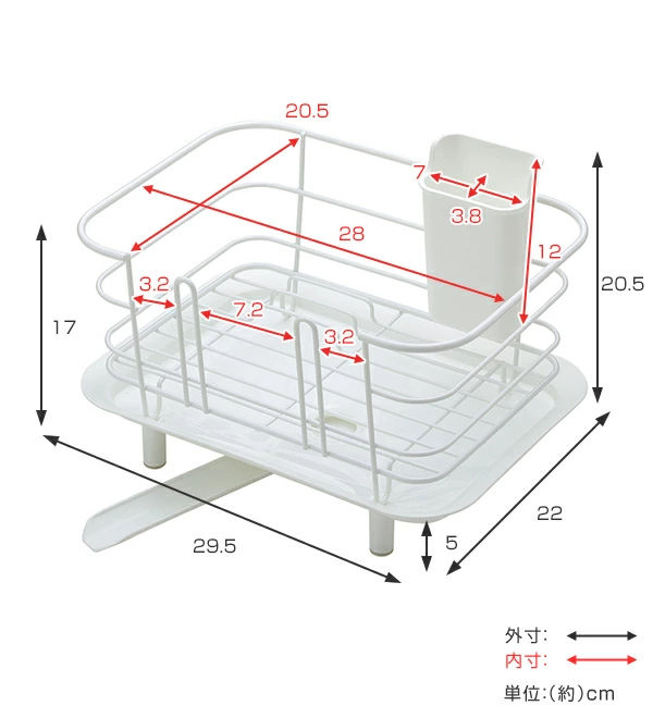 - 樋を含まないラックとラック本体とトレーの外寸:約幅29.5×奥行22×高さ20.5cm
