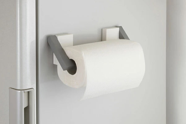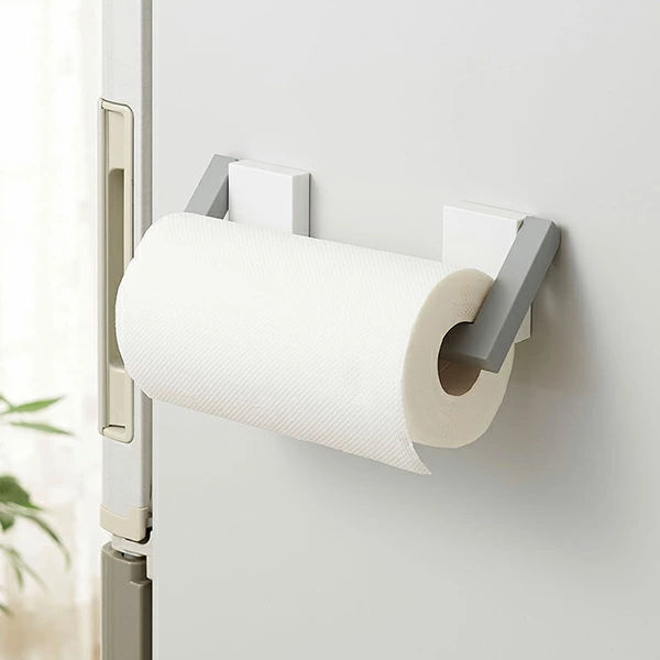 冷蔵庫横やスチール面などマグネットがつくところなら簡単に取り付けられるキッチンペーパーホルダーです。何度でも取り外しができ、使いやすい位置に自由に設置ができます。