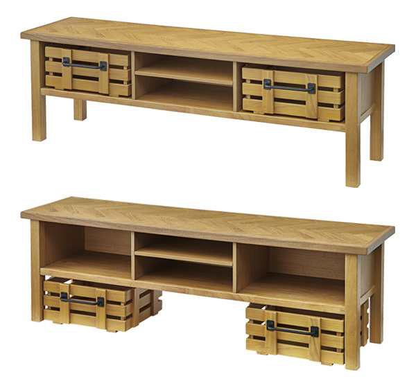 ●天然木オークとラバーウッドを組み合わせた、温かみを感じられるレトロテイストのテレビボードです。