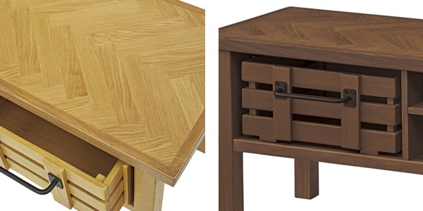 ●オーク材を組み合わせて作られたヘリンボーン組木の天板がお洒落で、洗練された雰囲気を醸し出します。