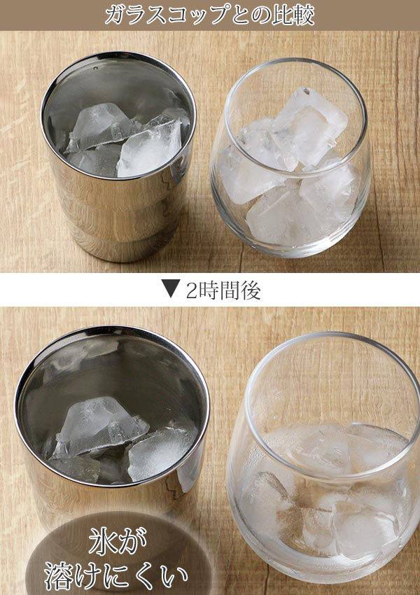 ガラスコップより氷が溶けにくく、緩やかな温度変化で冷たいお酒が楽しめます。
