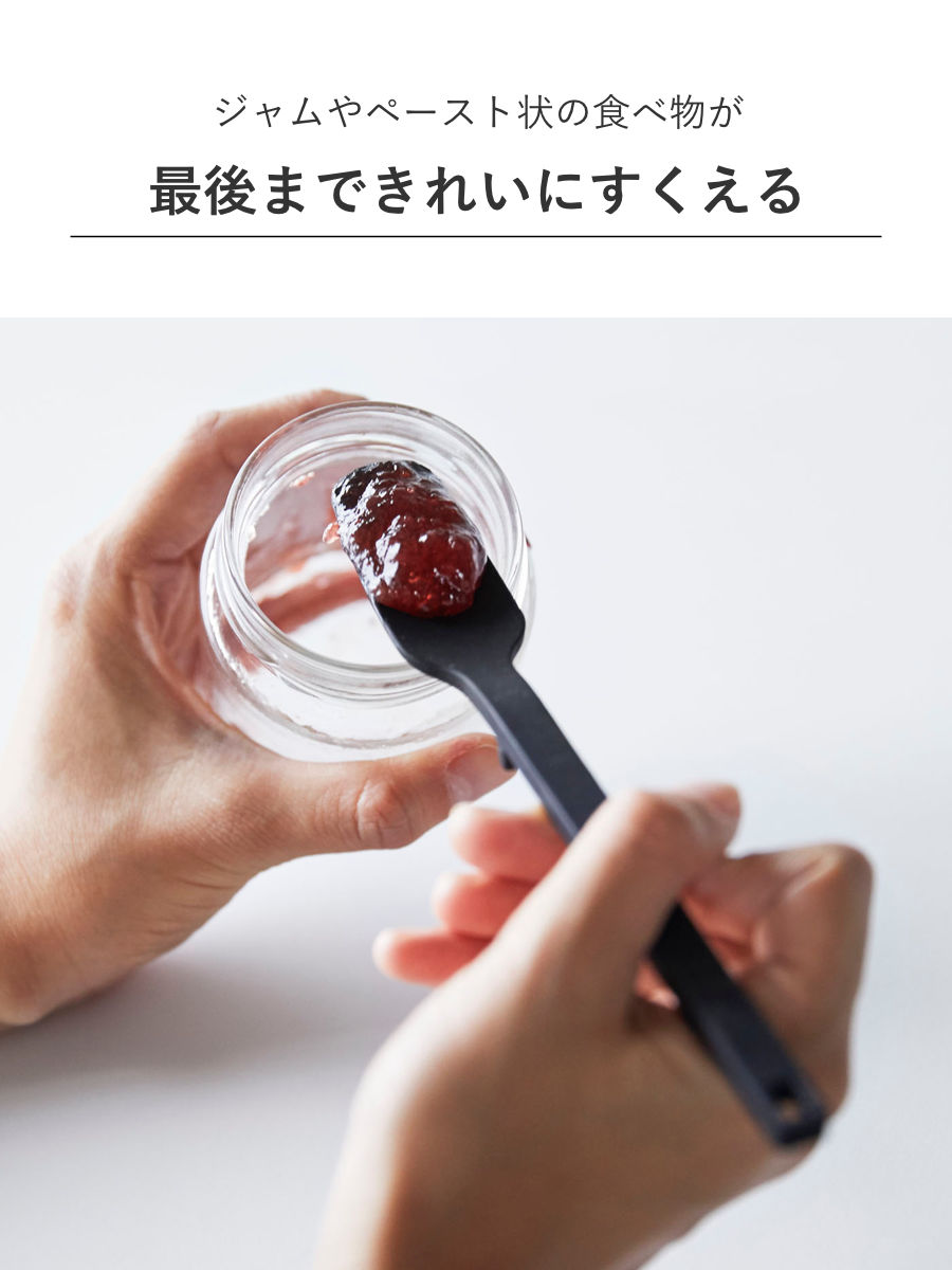 瓶底のジャムやペースト状の食べ物を最後までキレイにかき取ることができます。
