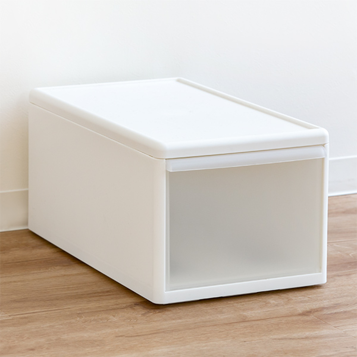 リビングや子供部屋、キッチンでのストック品の収納にもおすすめです。脱衣所ではタオルや下着、パジャマなどを入れておくと、入浴の際に必要なものを取りに行く手間が省けます。プラスチック製なので、水回りでの使用も安心です。シンプルかつベーシックな見た目は、置き場所を選ばず、どのお部屋に置いても使いやすいデザインです。