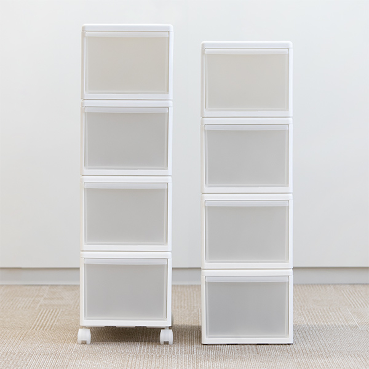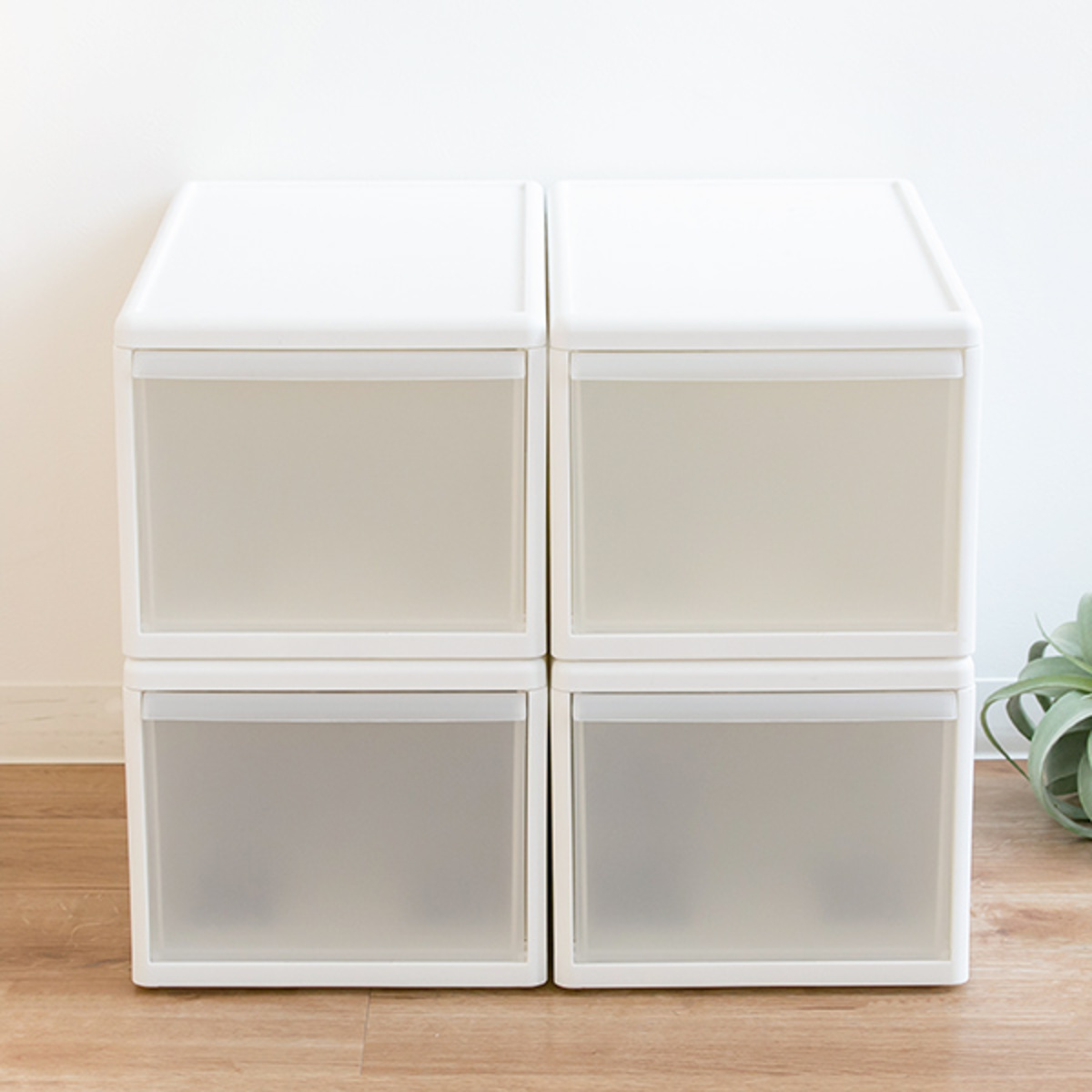 3種類の幅の異なる収納ケースでも積み重ねができるスタッキング構造で、自由にカスタマイズができます。無駄な空間を作らないブロック式構造なので、スッキリとした見た目です。MOSの収納ケースなら、スペースを有効活用したあなただけの「理想の収納」が作れます。