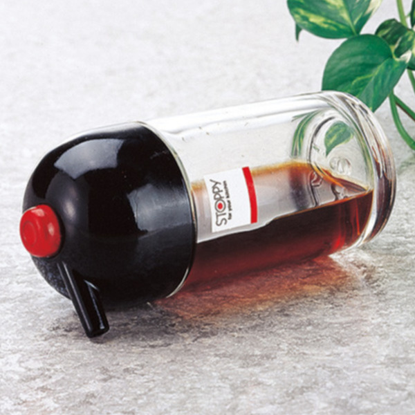 ワンプシュでONになり、スムーズに使えるソース差しです。ワンプッシュでON/OFFの切り替えができます。OFFにすれば倒れてもほとんど漏れません。冷蔵庫のポケットにも安心して使えます。SAUSE(ソース)・SOY(しょうゆ)・無地の3種類のシール付きです。
