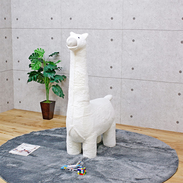 かわいらしいアルパカモチーフのスツールです。存在感抜群のビッグサイズでありながらも、どこか抜けている様子が印象に残ります。長い首で見つめる先には何があるのでしょうか・・・?