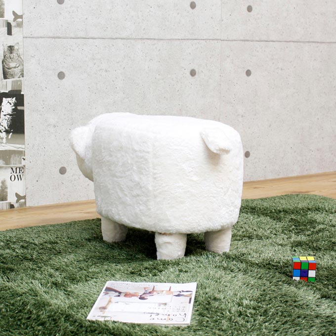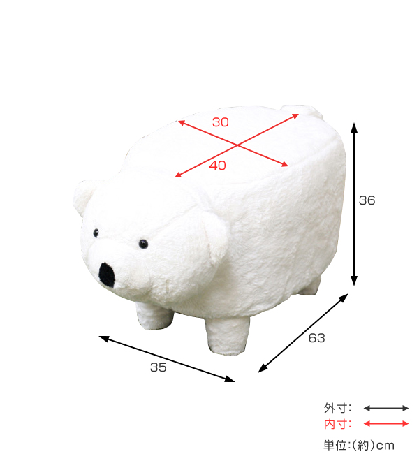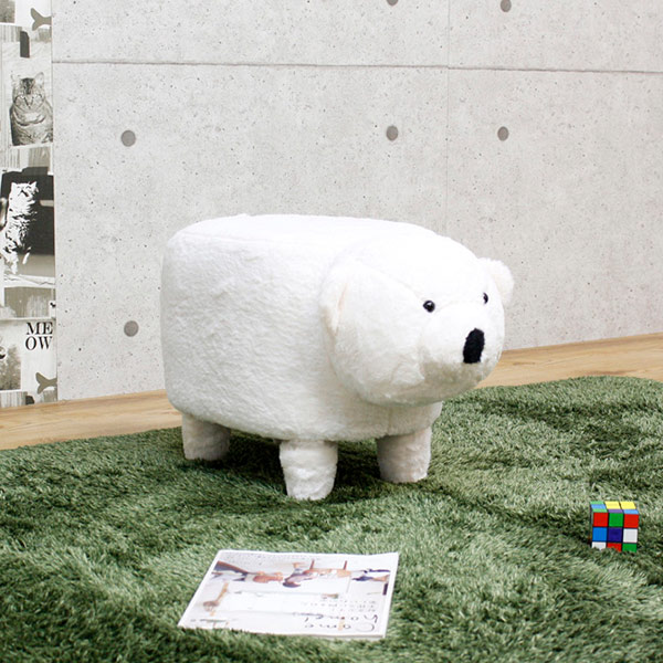 ころんとしていてかわいいベアモチーフのスツールです。キュートなかおで見つめられるとたまりません。ふわふわしていて癒やされます。